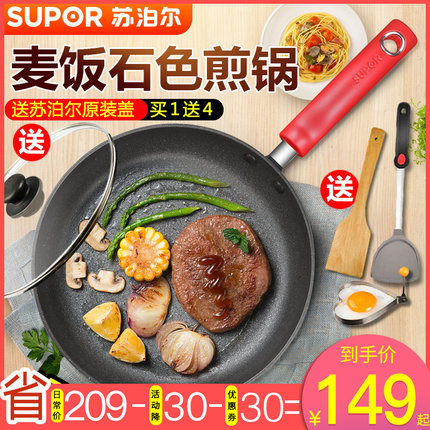 【苏泊尔 一体压制 麦饭石平底锅26cm 不粘锅+原装锅盖 劵后149元包邮】