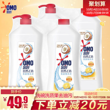 奥妙洗洁精1.1kgX4瓶,下单立减20元,领劵再减10元,*后到手39.9元4瓶。奥妙荷洗洁精,易漂易清,洗碗果蔬净,去油去农残,不添加荧光增白剂,洗完香喷喷,洁净不伤手,安全无残留,去污还除菌哦