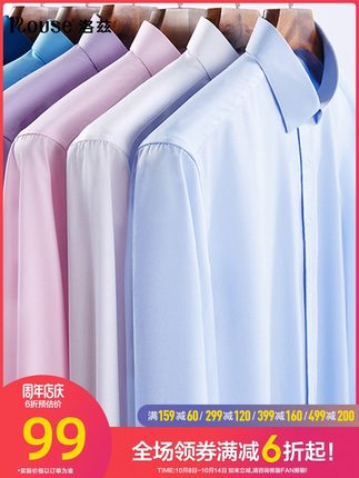 洛兹男装免烫白衬衫,男长袖2021秋季款商务男士黑衬衣,竹浆纤维面料,免烫柔滑,洛兹旗舰店159元,可领90元优惠券,实付69元到手