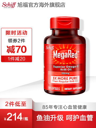 这款Schiff MegaRed 欧米伽3 深海磷虾油胶囊,美国原产,以南极纯净深海的极磷虾为原料,提取磷虾油精华,比鱼油更易吸收,效果更好。其主要作用是疏通血管、强力调节三高、降低心血管问题发生率,规格是120粒,每日1粒随餐服用,适合成人和老人服用,未成年人、孕妇和对海鲜过敏者忌服。每粒含磷虾油 350mg、欧米伽3-脂肪酸 90mg、EPA 50mg、DHA 24mg、磷脂质 130mg、虾青素 17mcg。南极极磷虾为原料,新鲜提取,杜绝原料中途污染,减少了腥味,极大限度的保持Omega-3的活性,含丰富的EPA及DHA不饱和脂肪酸,能在血液中迅速的被吸收,促进血液流通,减低血液在血管中的凝结及血管壁的黏附,从而有助于心脏和血管系统功能的正常运作,呵护心脑血管,预防三高。