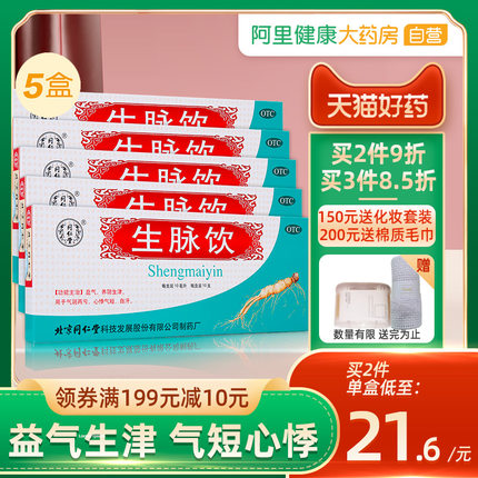 功能主治:生脉饮益气,养阴生津。用于气阴两亏,心悸气短,自汗。目前商家阿里健康大药房售价72元,领取20元优惠券,实付52元包邮。生脉饮是临床常见的中成药。由人参、麦冬、五味子组成。有益气生津、敛阴止汗的作用。可以治疗暑热导致的气耗津伤的问题,表现为倦怠乏力、气虚自汗、神疲乏力、咽干口渴等。现代临床多应用于急性心肌梗死、心源性休克、心律失常、冠心病、脱水、虚脱、心律不齐、心动过速、神经衰弱等。服用时避免食用油腻食物,过敏体质患者慎重使用。