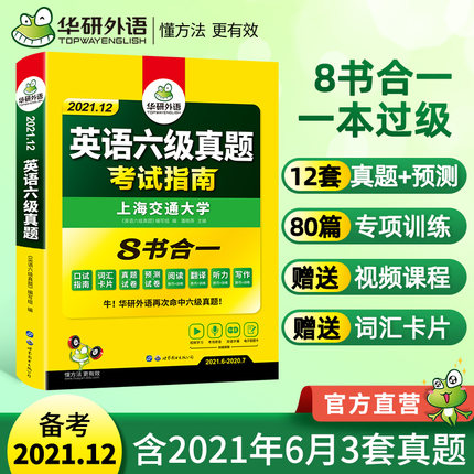 交大名师主编,8书合1~《2021华研外语大学英语六级真题考试指南》 券后12.8元包邮