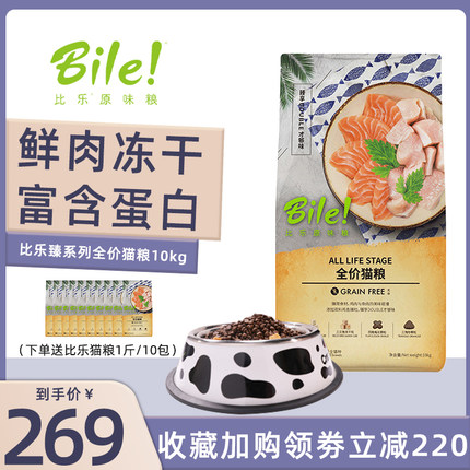 Bile 比乐 真骨粒冻干猫粮10kg成猫幼猫全阶段增肥发腮猫主粮20斤装bile 259元(需用券)