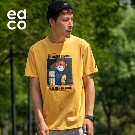 这款艾德克EDCO是与日本艺术家橋爪悠也先生合作推出的EYE WATER主题印花系列T恤,艺术家将自己的经典“雀斑女孩”系列画作重新诠释,创作出了EYE WATER主题系列图案,结合小三角的英文标识,获得更强的潮趣属性。面料选用100%新疆天然精梳全棉棉纱制成,双纱并行织造工艺,接近人体PH值,拥有更好的亲肤吸湿透气效果。