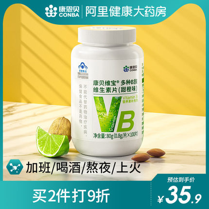 天猫「阿里健康大药房」,第一款39.8元,可领20元优惠券,实付19.8元到手,规格是100片,高含量7种B族营养相互作用易吸收。这款康恩贝复合维生素B族片,含有7种B族维生素成分,具有缓解工作疲劳、缓解口腔溃疡、维护神经系统、促进消化、保护皮肤头发、释放能量、防止贫血、促进代谢的功效,特别适用经常熬夜加班人士。