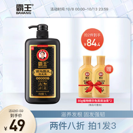 霸王官方旗舰店59元,可领20元优惠券,实付39元到手。官方出品,超值低价。主要原料有:何首乌,桐叶,黑芝麻,侧柏叶等成分。蕴含上等中草药精华配方,使秀发自然乌黑浓密,水润光泽有弹性!