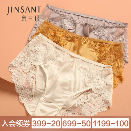 金三塔 女士100%桑蚕丝蕾丝无痕真丝内裤 1条 29.9元包邮(拍2件54.9元)