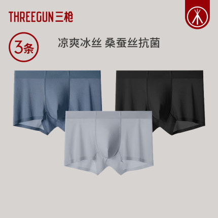 三枪 男式5A级桑蚕丝抑菌裆冰丝内裤 3条 多色组合44.9元包邮