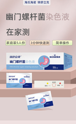 88vip到手5.6元,幽门螺杆菌染色液,在家测,家庭装5人份,3分钟快速测,简单操作海氏海诺胃幽门螺旋杆菌抗体检测试纸,检测胃炎胃病胃溃疡口臭等抗体属性,早发现早做预防治疗,操作便捷,快速检测,值得信赖~