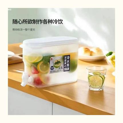 自制各种果汁饮料,带龙头保鲜冷水壶,食品级PP材质,耐高温,大口盖子,清洗方便,3.5L大容量,随时都能喝到凉爽的冷饮和果汁超方便~