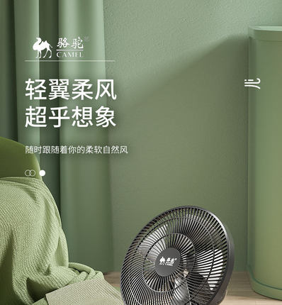 骆驼品牌,三档风速,满足全家需求,一级耗能,安全省电,颜值担当,家居百搭,低噪静音,柔风舒适,多款可选,早买早实惠!