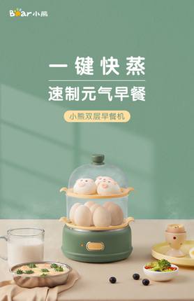 Bear 小熊 煮蛋器家用蒸蛋器多功能小型双层自动断电鸡蛋羹机早餐机神器 69元