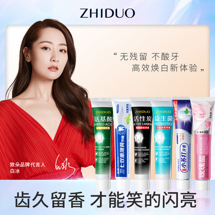 【12种款式任选!】白冰代言!致朵增白去渍护龈牙膏。减少牙菌斑,改善口腔环境,三重净白科技,深层去渍,健康亮白,持续清新口气,清洁呵护牙齿,建立口腔健康屏障!
