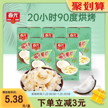 酥脆的椰子片,追剧小零食。目前天猫商城春光食品旗舰店,60g*3盒售价¥19.9,,下单立减¥3,可领取2元优惠券,下单实付¥14.9包邮