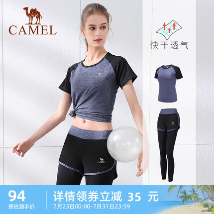 Camel 骆驼 女式短袖/长袖健身瑜伽服假两件运动套装 多色新低84元包邮