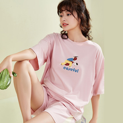 顶瓜瓜 男女款纯棉短袖短裤睡衣家居服套装 3色新低39.9元包邮