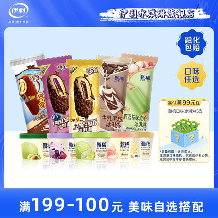 【满199-100元,再吉加赠5只随机口味冰淇淋,最多可到手55只】伊利冰淇淋任选,巧乐兹,甄稀支棒,甄稀杯,须尽欢,应有尽有。