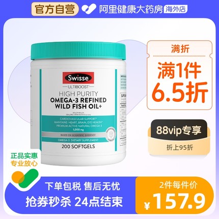 斯维诗 高纯度Omega-3精炼野生鱼油软胶囊1000mg*200粒新低98.9元包邮包税