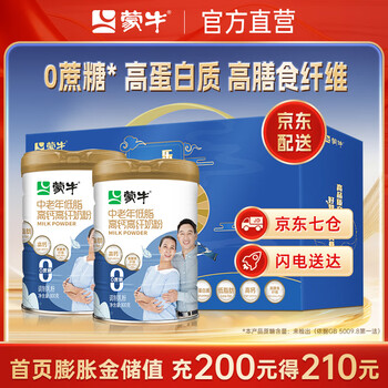 蒙牛 中老年低脂高钙高纤奶粉 800g*2 罐礼盒装 79.4 元包邮