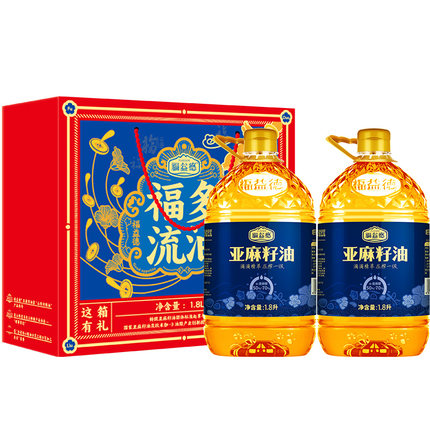 金奖认证,福益德 一级冷初榨亚麻籽油 1.8L*2瓶礼盒装 76.9元包邮