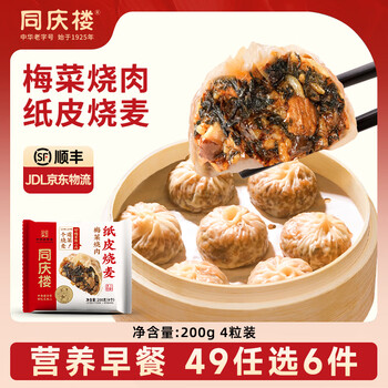 中华老字号,同庆楼 薄皮素包280g/纸皮烧麦200g/奶黄香蕉包210g等 任选6件34元包邮(5.67元/袋)