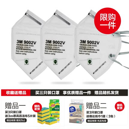 3M 9001V防雾霾带呼吸阀口罩3支装,采用高静电纤维面料,呼吸阻力小,防护效果好,目前售价16.8元,可以使用10元券(点我领取),实付6.8元包邮,送3M百洁布5片装或者维达抽纸1提