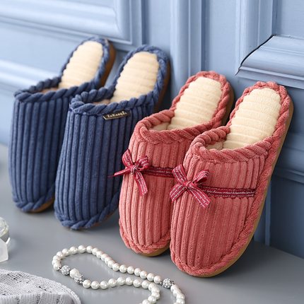 【冬季灯芯绒厚底情侣家居棉拖鞋 券后12.9元包邮】