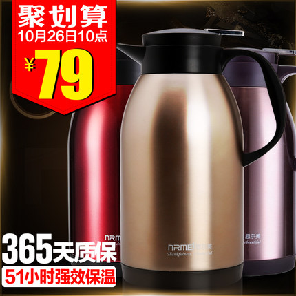 这款恩尔美 不锈钢保温壶2200ml,内胆采用进口304不锈钢材质, 天猫热卖商家聚划算价79元,领取20元券,实付59元包邮,其他渠道多在79~99元。