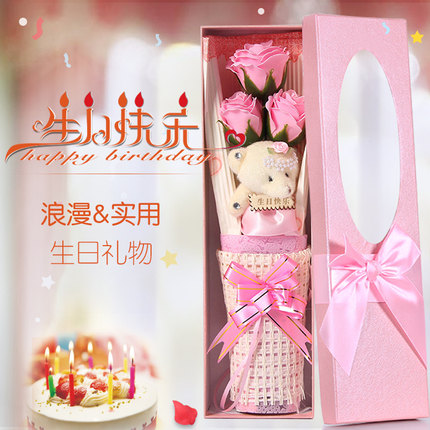 郎森工艺品 香皂花礼物 ,含3朵玫瑰肥皂花和一个小熊,拍下备注留言发字牌,尺寸10.5*34*6cm,浪漫可爱。目前售价11.9元,可以使用5元券(点我领取),实付6.9元包邮,买来送女友或者老婆吧,多色可选哦。