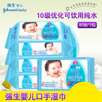 【19.9元包邮(39.9-20)强生婴儿宝宝无泪配方湿巾80片*3经济装】