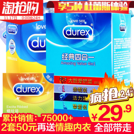 【杜蕾斯 避孕套32只装(经典24只+随机6只+螺纹套2只+铁盒)¥24.9包邮(¥29.9-5)】