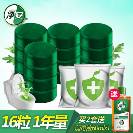 【净安 艾叶蓝泡泡洁厕灵 16粒 14.9元包邮(29.9-15元券)】
