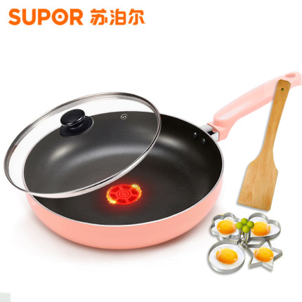 苏泊尔大品牌,电磁炉燃气通用,火红点技术,温度看得见,不粘易清洗,煎蛋不粘锅,煎鱼煎牛排无油烟平底锅,送铲和煎蛋器。