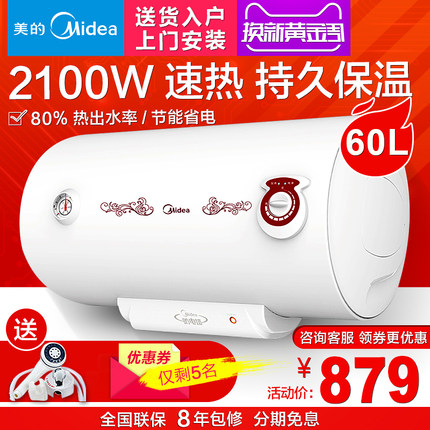 【美的(Midea)F60-21WA1电热水器60升 劵后779元包邮】