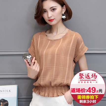 霓德蜜 女士 格子短袖雪纺衫,精选优质面料,亲肤透气,完美修身版型,展现优美身段,报价59.9元,使用20元券,实付39.9元包邮