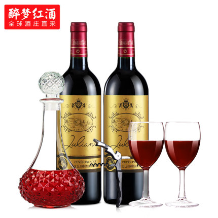 【歌瑞安 法国原瓶进口红酒 2支 39.9元包邮(赠醒酒器、2酒杯、开瓶器)】