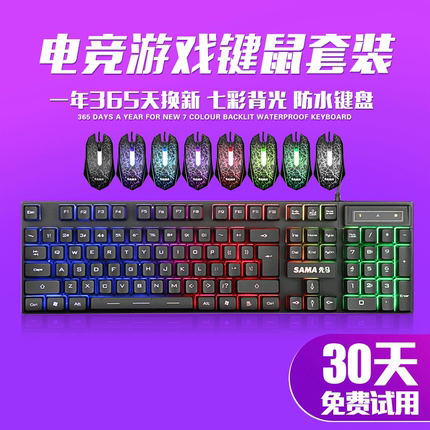 先马 有线键盘鼠标套装,悬浮式七彩背光键鼠,激光镭雕字符,按键寿命长,酷炫好用,适合居家办公使用。