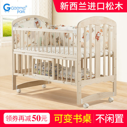 【Geemepark 实木无漆婴儿床摇篮床(最后两款) 券后348元起包邮 送蚊帐】