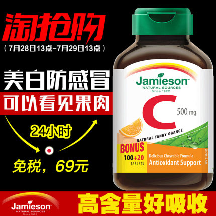 【加拿大进口 健美生 维生素C咀嚼片 120粒 劵后39元包邮】