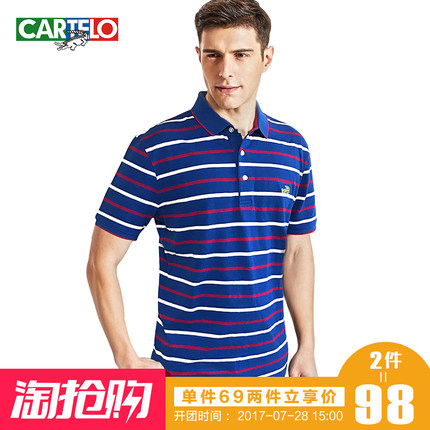 【卡帝乐鳄鱼 男士 纯棉 条纹POLO衫 59元包邮(多款色可选)】