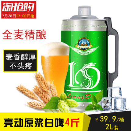亮动 原浆小麦白啤 2L桶装 ,全麦精酿,麦香浓郁,口感顺滑,炎炎夏日来一瓶,冰爽一夏~商家报价39.9元,可用5元券,实付34.9元