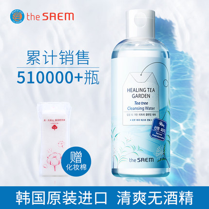 【TheSaem 舒缓茶园茶树卸妆水300ml+送60片化妆棉 劵后39包邮】