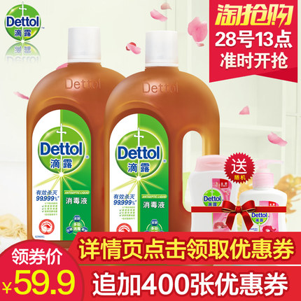 【Dettol/滴露 杀菌消毒液1.15L*2瓶 劵后59.9元包邮】