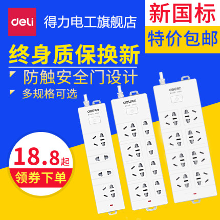 得力 4插位排插 2米,使用ABS工程塑料,抗阻燃,防误触安全门技术,报价21.8元,使用5元券,实付16.8