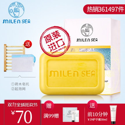 Milensea以色列进口死海硫磺皂,富含21种死海矿物元和多种天然植物精粹,控油祛痘,深层清洁,除螨嫩肤,温和不刺激,滋润不紧绷,可做洗手皂、洗衣皂,一皂在手,妙招多多,大牌保证,值得信赖!