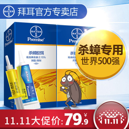 拜耳 拜灭士杀蟑胶饵是德国BAYER拜耳转为家庭研制的一款高效灭蟑胶饵,安全微毒,目前天猫商城5g+12g装,售价¥89,可领取店铺¥30优惠券,券后实付¥69包邮,送精油驱蚊纽扣。