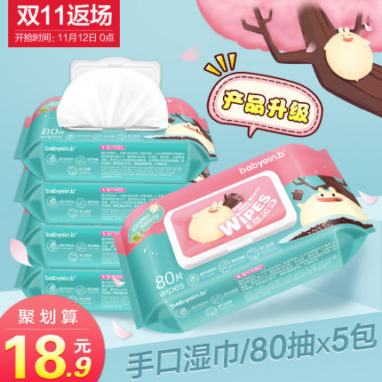 【怡恩贝 婴幼儿专用湿巾 80抽*5包 ¥16.9包邮(¥18.9-2)】