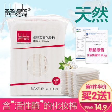巴巴罗莎 纯棉 双面化妆棉 230片,天然好棉,柔软丝滑,亲肤舒坦,干湿两用,不掉棉絮不刺激,安全无添加,报价29.8元,使用15元券,实付14.8元。