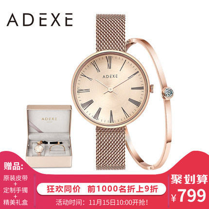【ADEXE 进口手表女石英表+手镯礼盒(第1款) 619.1元包邮(799打9折-100券)】