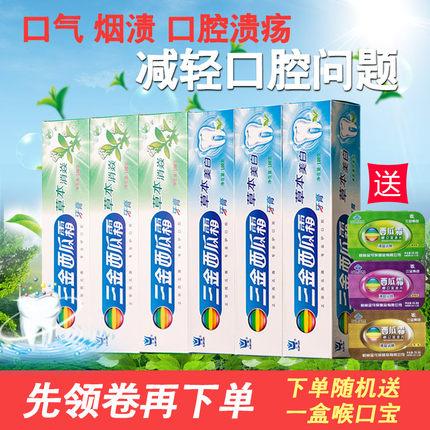 【三金 西瓜霜 草本配方牙膏 美白/消焱牙膏100g*6支 送喉口宝¥29包邮】
